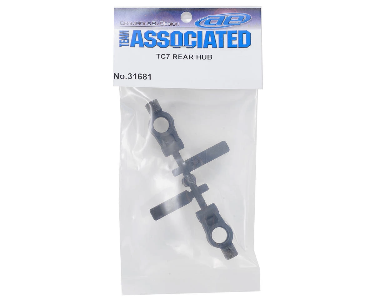 Team Associated TC7 Rear Hubs. Package includes two replacement TC7 rear hubs that can be used on the right or left side of the chassis.