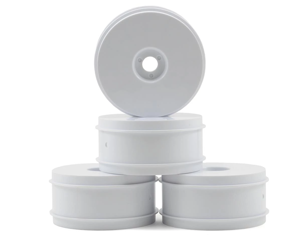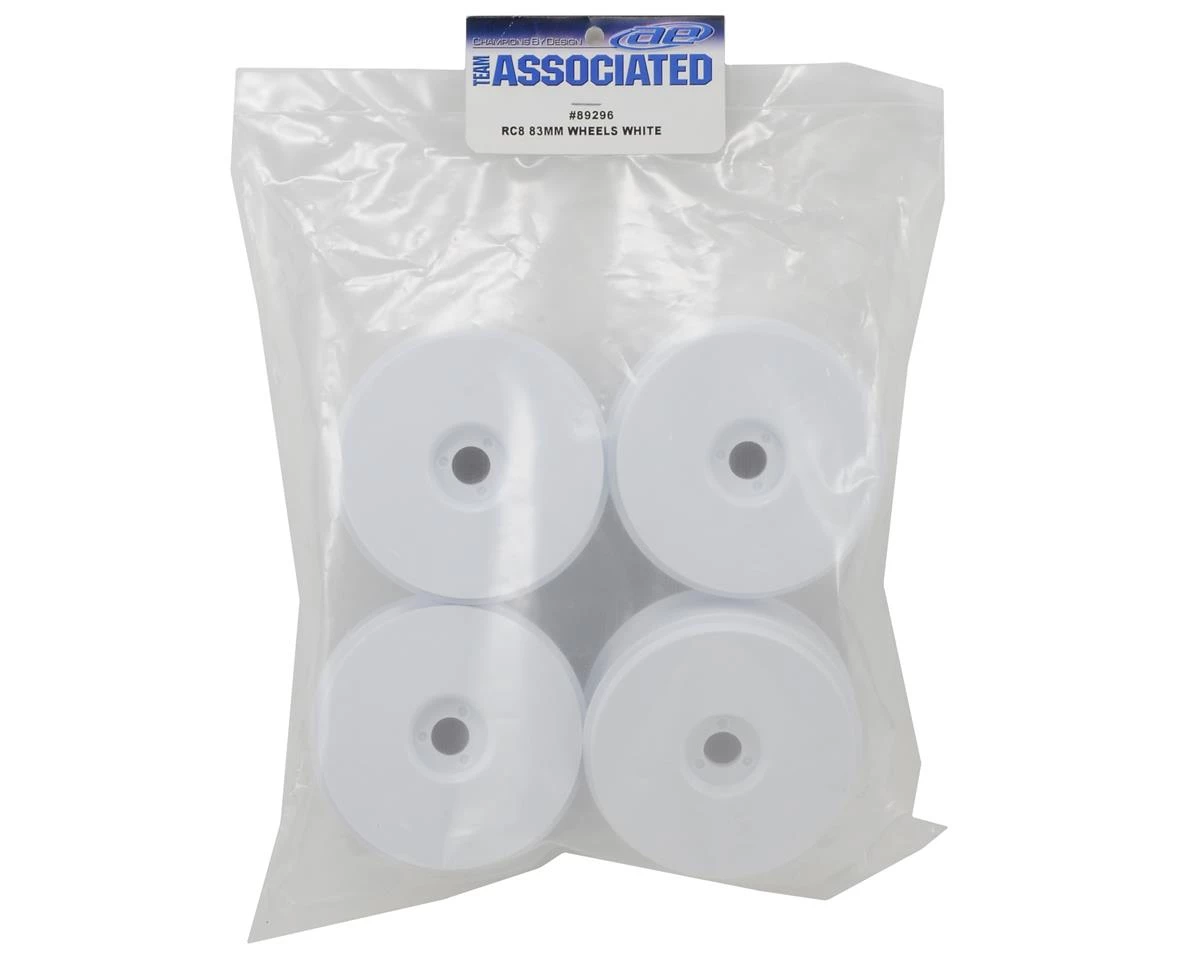 This is a pack of four white Team Associated 83mm 1/8 Buggy Wheels.